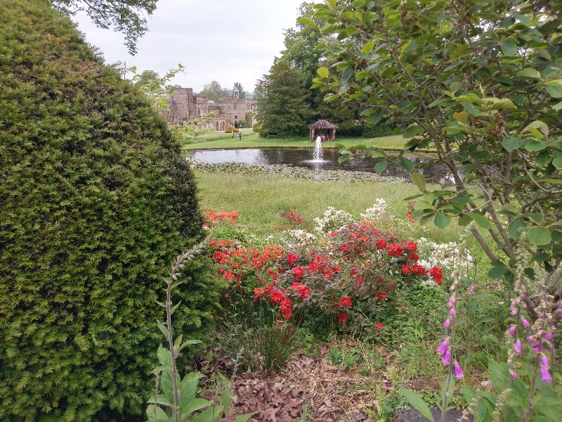 Decided to have an afternoon out at Forde Abbey, I can get in free on Fridays with my RHS card. It was pleasantly quiet but enough people around not to be empty. The gardens are lovely just now and we were in time for the last burst of the "gusher" which is switched on twice a day. A bit wet if you happen to get too close!