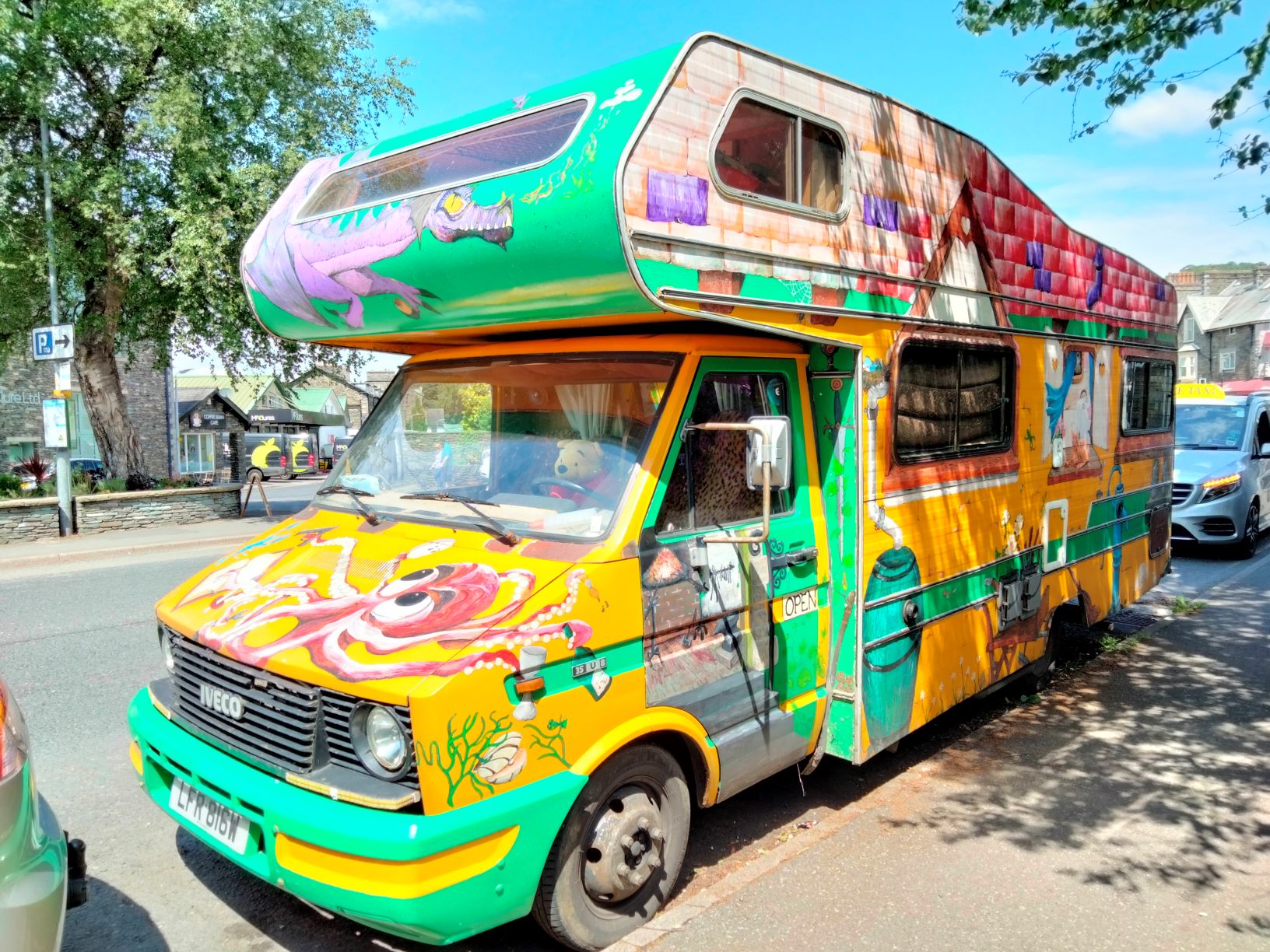 Spotted this funky motorhome in Bowness, note the driver!