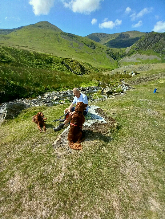 After a long drive yesterday we decided to walk direct from the cottage today, along the Coledale valley, the spectacular views added to by borders of wild foxgloves, up to Force Crag mine an old lead mine closed in the 40's and now owned by the National Trust. And not a bad place to stop for coffee by the stream just below the mine - a handy refreshment stop for the dogs too!