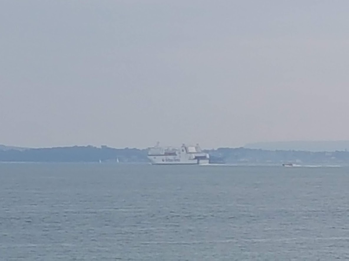 Bit of nostalga and a bit grainy but that is the 1400 hrs Portsmouth to Caen ferry just leaving Spit Head.