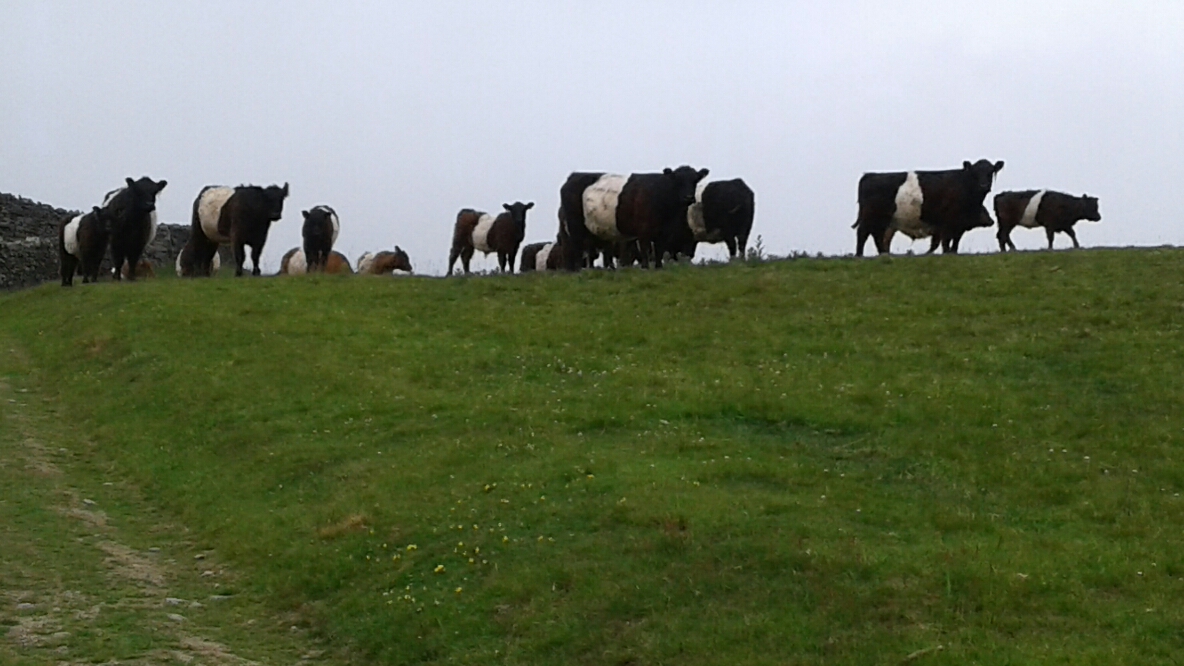 Returning along the lakeshore, we encountered this very "friendly/curious" herd of, I think, Belted Galloway cattle, one almost coming nose to nose with Ralph. Lovely animals, though and not at all threatening.