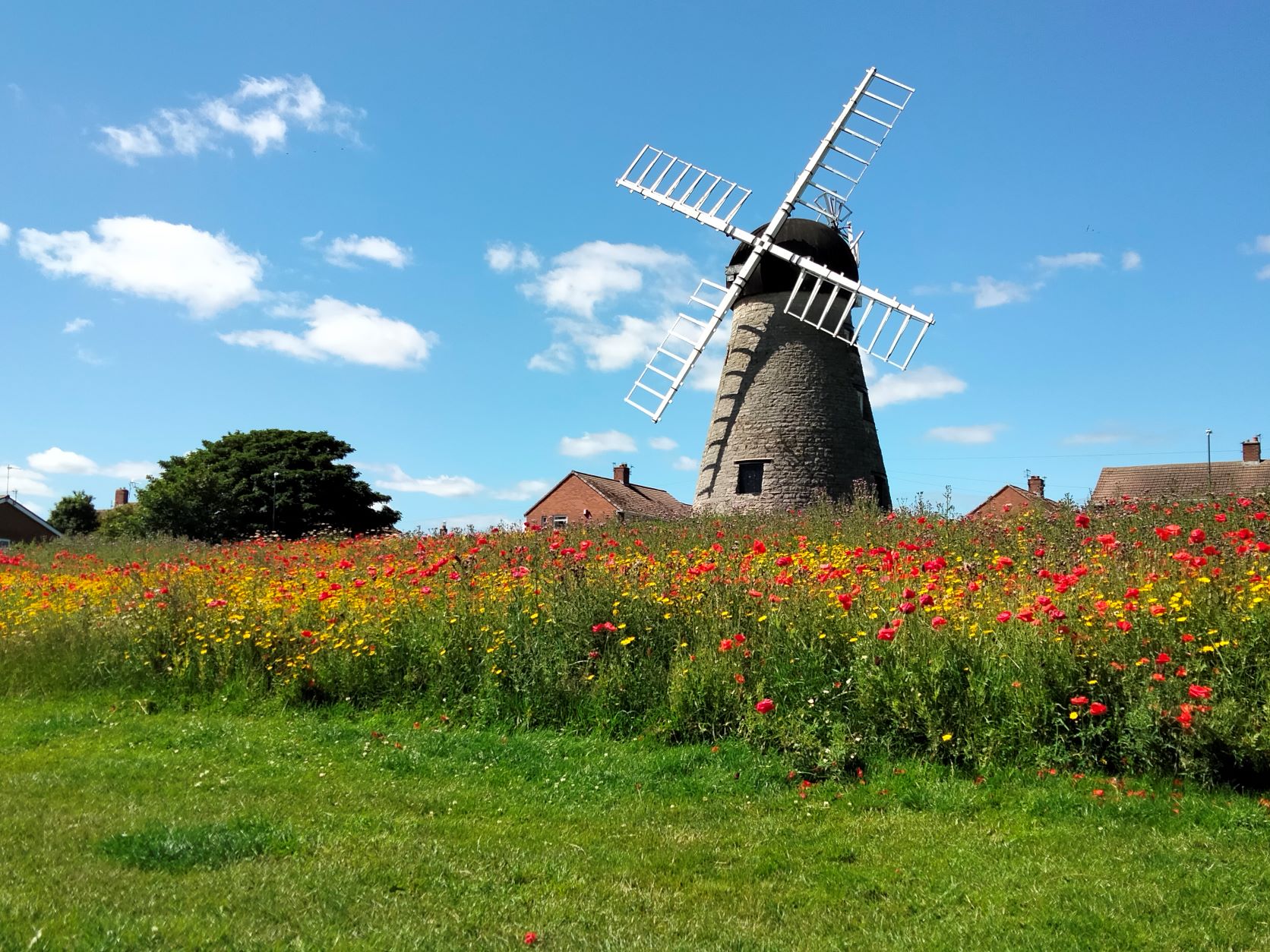 It's funny how things turn out, I couldn't go my usual way using the bus/cycles lanes through Gateshead as there was a broken down bus and that would have meant going into the heavy morning traffic so I decided to do a small detour round the side streets. And I found fantastic buildings that I never knew existed, love it when that happens. A busy beach at Tynemouth and down into Sunderland where another surprise, the flowers at the windmill just past Whitburn.