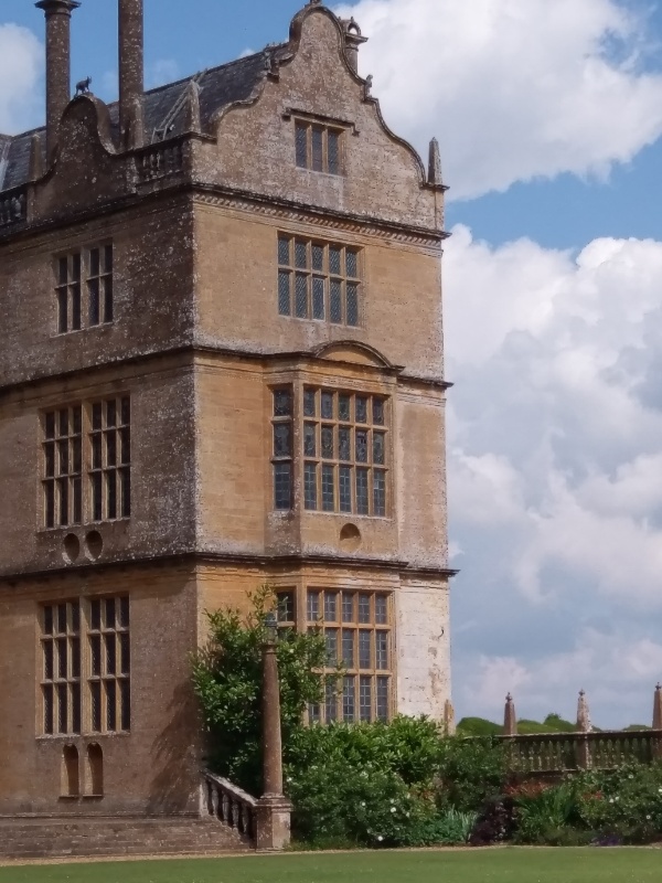 Felt a bit miserable yesterday because "rabbit hole" foot injury has extended my recent enforced stay at home for too long. So decided, hobbling or not, to ask OH to take me to Montacute House, just for a coffee and cake and to see people once more. We can't see people from our home unless they are glimpsed out walking on the footpath etc.