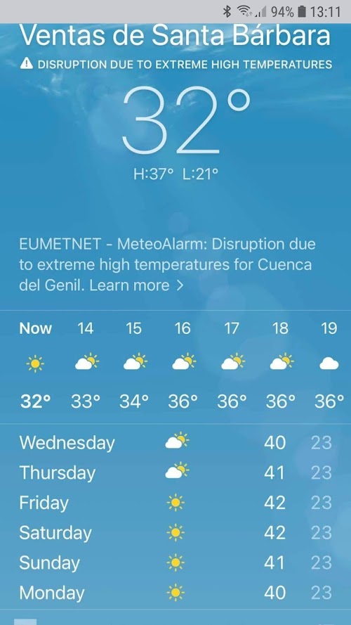 Upto 35C today and tomorrow then 33C and getting a bit cooler for the weekend and next week as well.