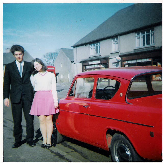 Going back to old cars - I learnt to drive in an old Anglia (I don't know the model, but it had three gears on a long stick that was like stirring porridge) reg WBP 2. It was a step up from the "sit up and beg" model we had before. Then we graduated to my Dad's pride and joy - a bright red sloping back model. This is in 1968 with my then boyfriend (now husband).