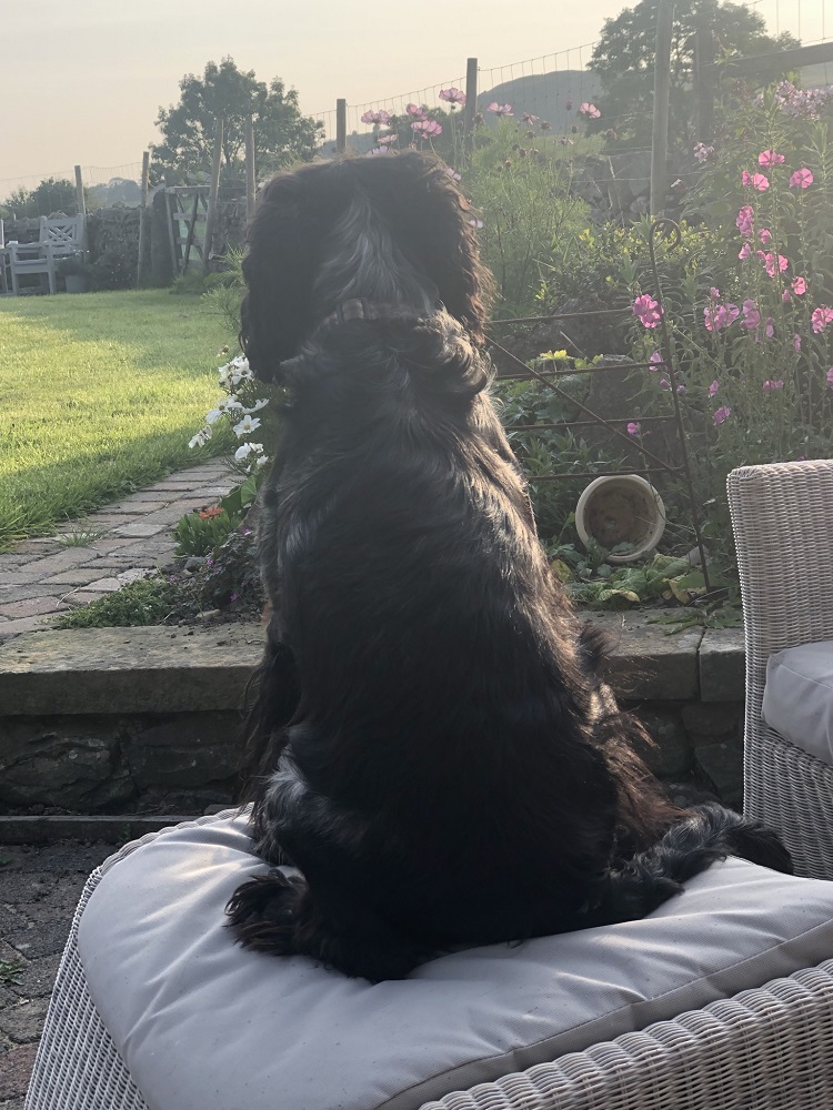 We've got company this weekend - a daft dog. Our son and family are away for a couple of days so we've been volunteered to look after Ronnie. No trouble really, and when he was a bit whiny this morning he quietened down when I played some early Bob Dylan. A dog with great taste, but no idea of personal space