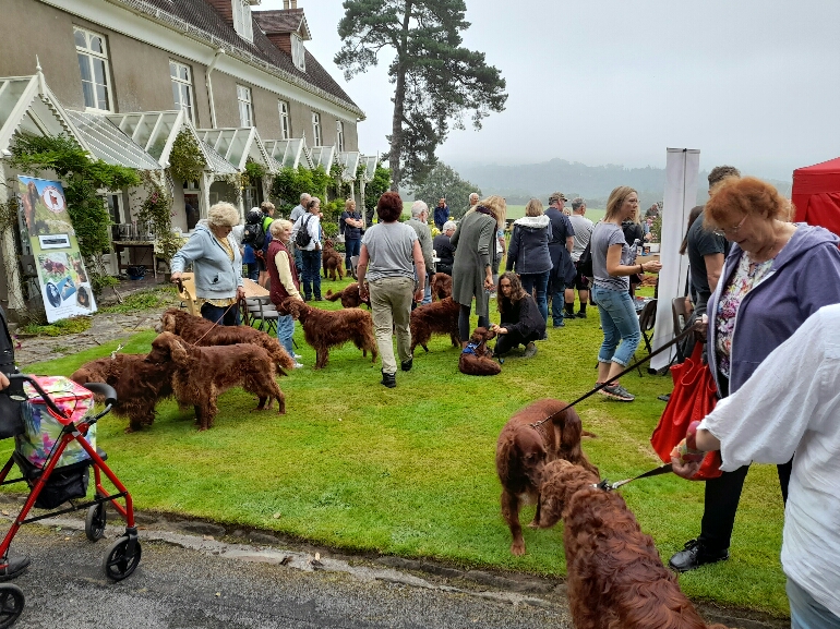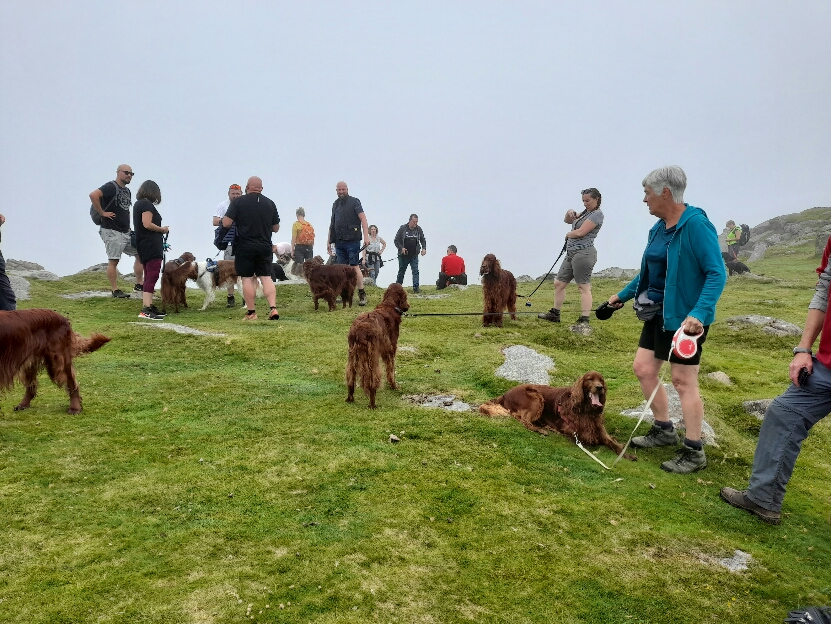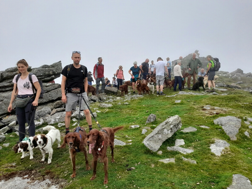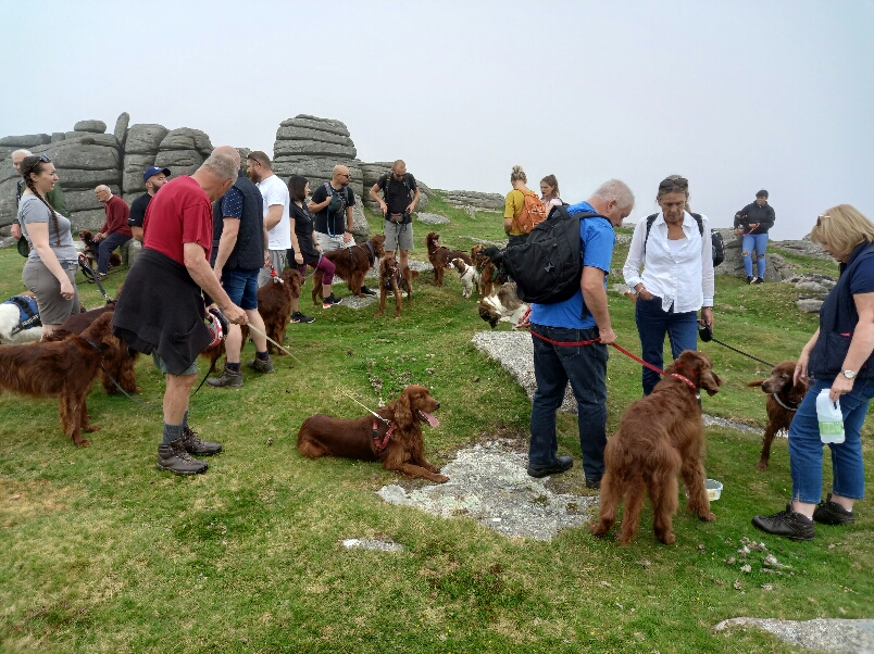 We have had a fabulous day on Dartmoor. 41 Setters, 5 Spaniels, 3 Retrievers along with a Doberman, a Husky and a Daschund (yes really!) turned up for the Rescue Walk. Most were happy with the shorter version, but about 20 braved the full 5 miles in perfect conditions, cool, dry and comfortable.