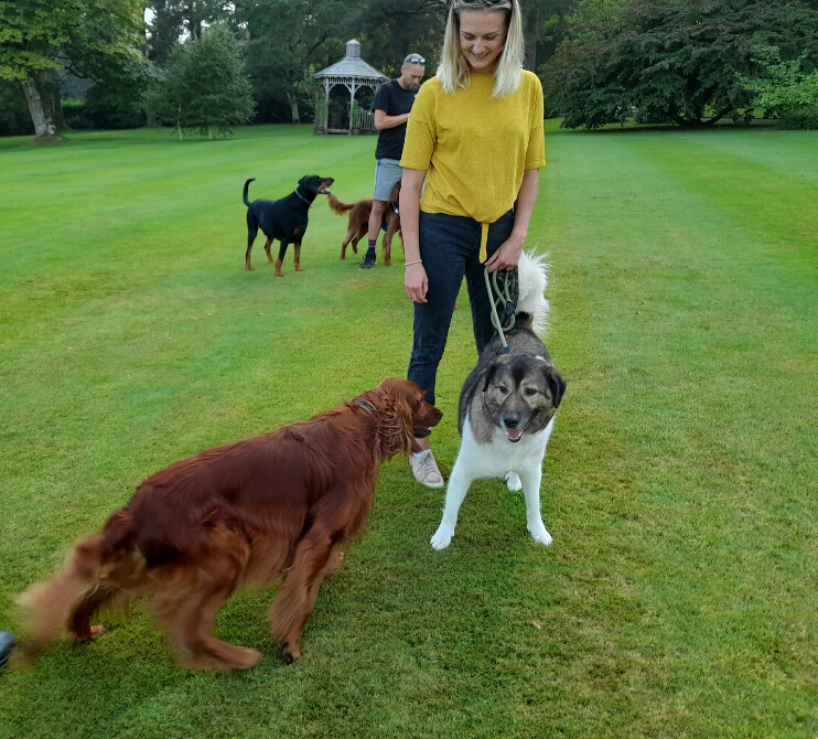 ) followed by a group photo (there were more but these were all I could fit in on my phone!) and then it's "unleash the hounds" time and it's a magical sight to see them all racing around the grounds playing and, for some, diving into the lake to cool off!Just to make Ralph's day, he found himself an admittedly less than willing girlfriend - and she's not a Setter!
