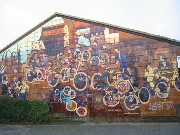 On the way back Margaret wanted to have a look at a new Aldi supermarket not far from where we live. Where the new shop has been built was previously a parade of shops and on the end of the end of the original building as a mosaic of tiles created by local child who attend the nearby senior school some 40 or more years ago. It was a condition of the planning that Aldi pay for the removal and re-erection of the mosaic. They were not keen on the extra expense but eventually agreed and it is, fortunately, preserved for future generations. Picture below of its original position.