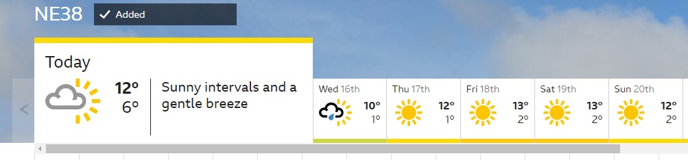 It’s been like that all day today. Great to see the sun and blue sky and it should be like that most of the week.