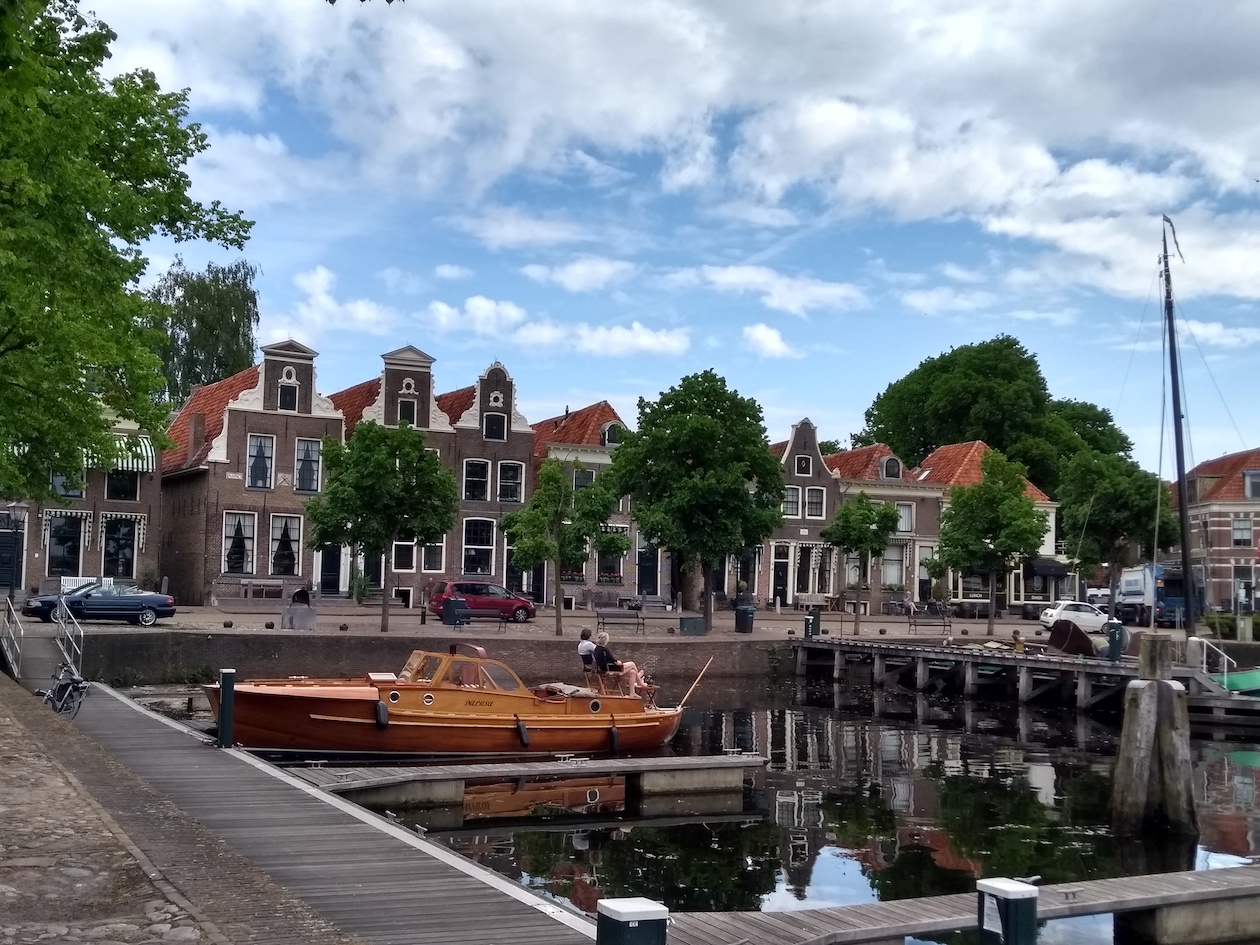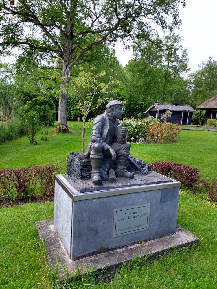 We did stop regularly both for birdwatching and for coffee etc. The scenery as we cycled along the canal route into Ossenzijl was splendiferous. The houses lining the canal breathtaking. See photos. Lovely statue of a reed cutter, a lovely bridge over the canal and a uninvited visitor when we arrived home which landed on OH's shower shoe. We did have a wonderful ice cream in a lovely little town called Blokzijl.