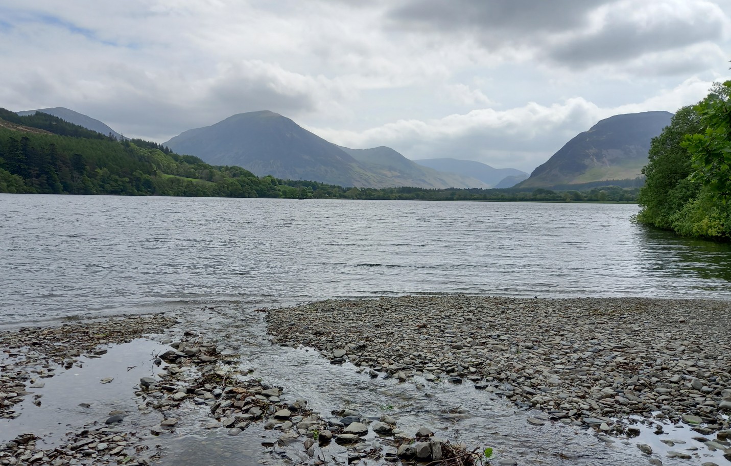 Found a lovely woodland walk today that would suit you with lots of birdlife, not that we were able to identify any as it's hard trying to view when guiding Flyte. A couple we met had seen Pied Flycatchers, Redstart !and Wood Warbler, and they admitted to being novices! Heard plenty of Cuckoo's calls too. We parked at Watersend at Loweswater and walked through to Maggie's Bridge through Holme Wood, and back via the waterfall. Great views down the lake to Whiteside, Grasmoor and Mellbreak.