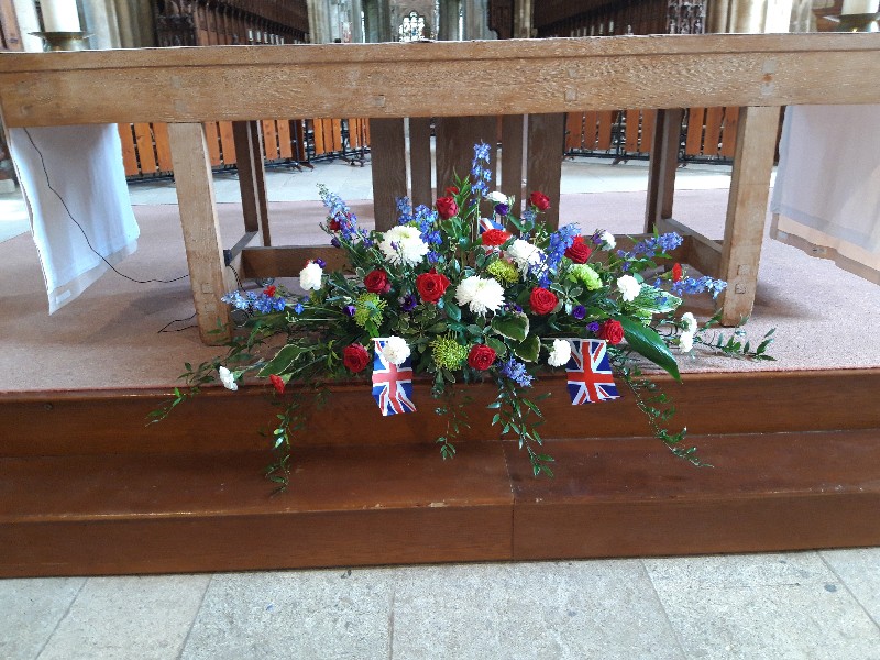 We had a BBQ at our son's last night and were very lucky with the weather as we were able to sit outside until 8.00pm. I started the day at the Cathedral and I attach some photos of our decorations. I also attach a photo of the Cathedral illuminated at the same time as all the beacons were lit. I think we did Her Majesty proud. Later this afternoon we went to a Jubilee garden party at the parents of our SIL (also good friends). So lovely to see so many of our family and friends there. Once again we were so lucky with the weather. It was dry and sunny all afternoon. All in all a lovely couple of days.
