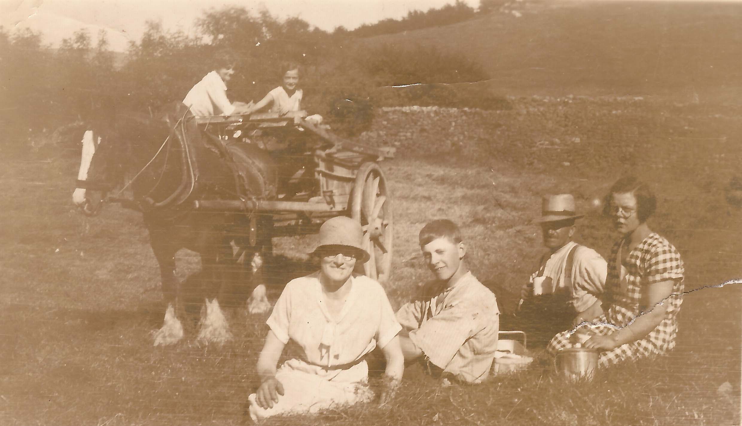 As a contrast to my earlier photo, this haytime picture was taken in 1932. The young lad in the front was my late father-in-law.