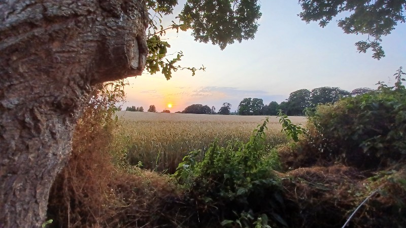 Well that's the sun setting in sunny Somerset tonight The wheat field is acting like a big radiator but it's not quite ripe yet so corn cutting is yet to come.