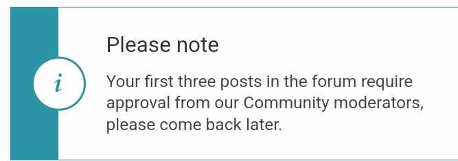 Your first three posts in the forum require approval from our Community moderators, please come back later.