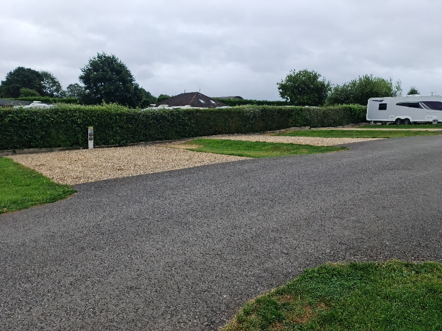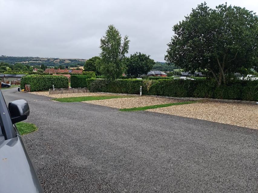 We did come here a couple of years ago, in the midst of Covid, and it was really busy... I wonder if it might be more to do with fuel costs... ?? The pitches are not too big, but they're OK. They ask for vans to be pitched to the far left (looking at the pitch). There is ample room for an awning, but the car has to be parked across the top of the pitch... It works OK, but we do feel a bit close to the caravan next door...
