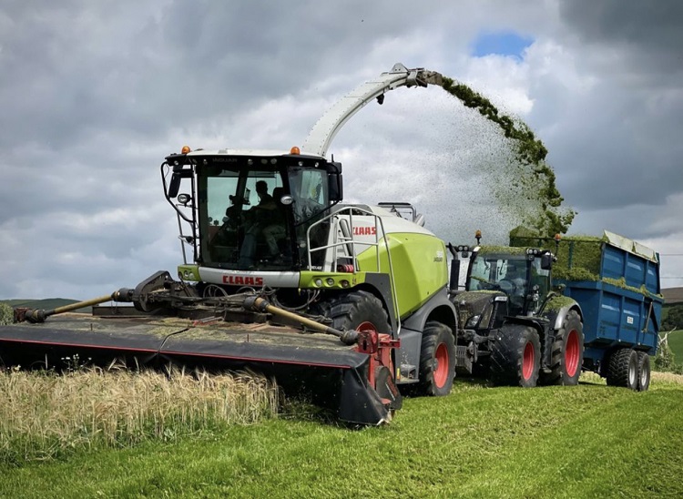 Yesterday a contractor came with his big machines and got in our Wholecrop (peas and barley undersown with grass). The ohotos don't show the steepeness, but it all came in safely.
