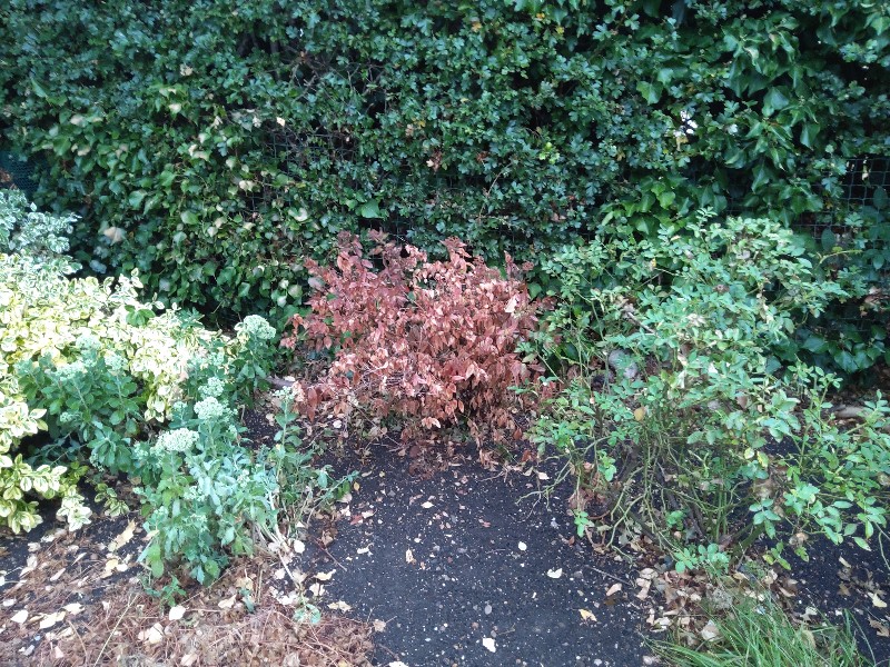The hydrangea looks attractive B2 but understand it will worry you! We have one but can't get it to grow so have the opposite problem.