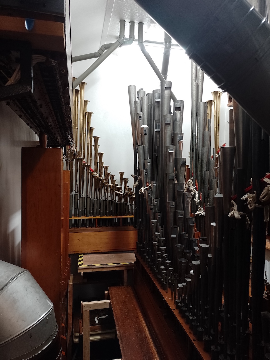 43+ years later she saw her second (and me). It's Open Heritage week and at Howden-le-Wear the NETOA had an open day so we went along and were entertained for 2 hours with the history and a look behind the scenes of a magnificent beast. We were also treated to some wonderful playing and whilst having a cuppa before leaving an organist not belonging to the organisation asked if he could play it as he needed to tune up for his engagement tomorrow at Middlesborough and what a good job he made of it.