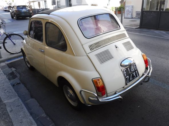 A great outdoor meal last night in Piazza Santa Croce last night and some cars from from my youth. I used to drive a 500 just like that one.