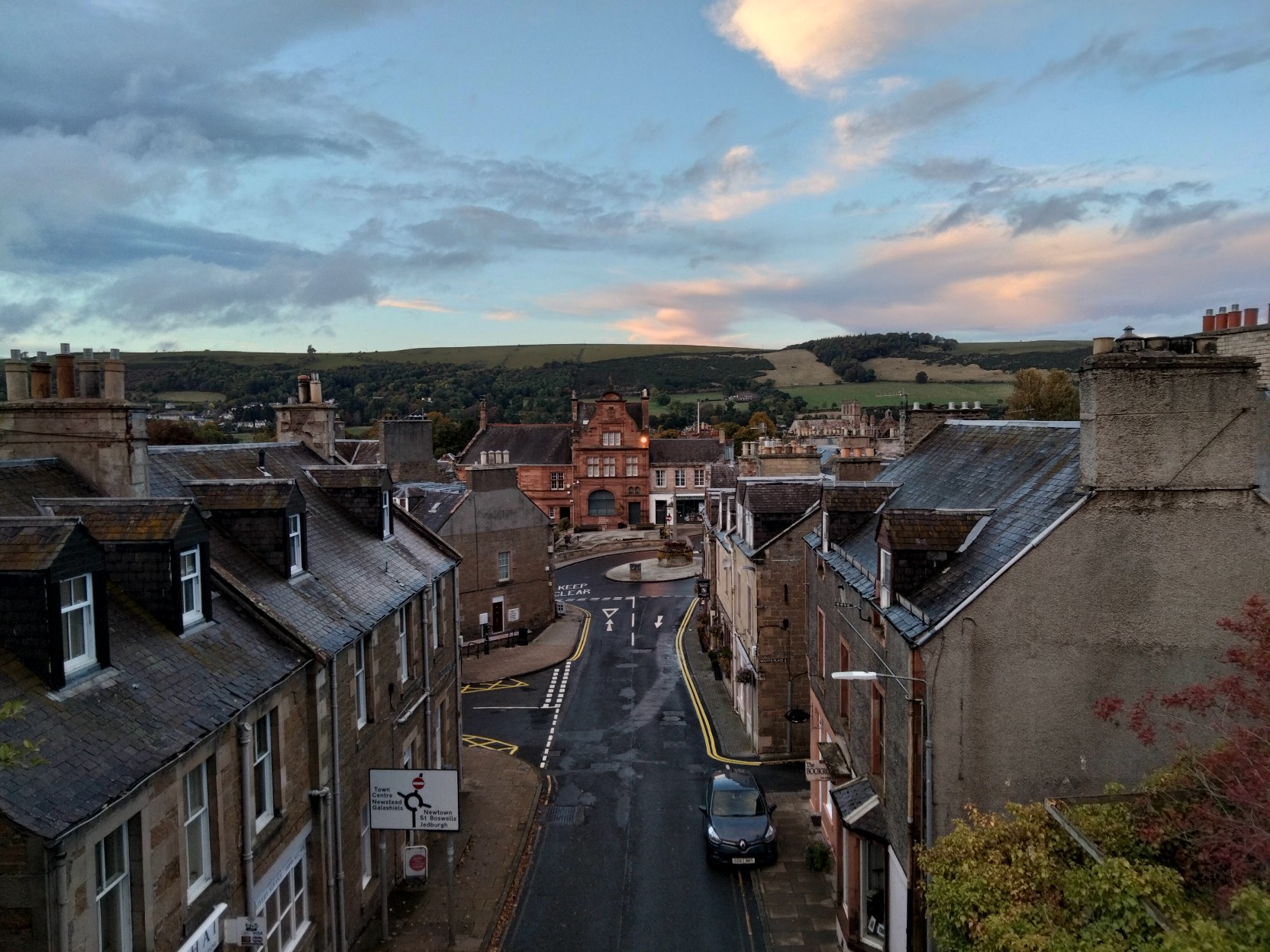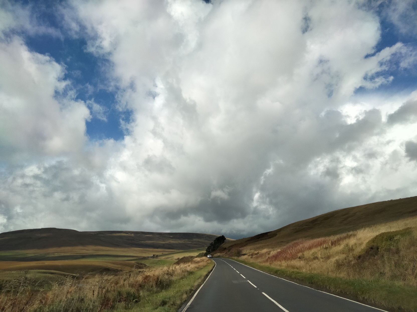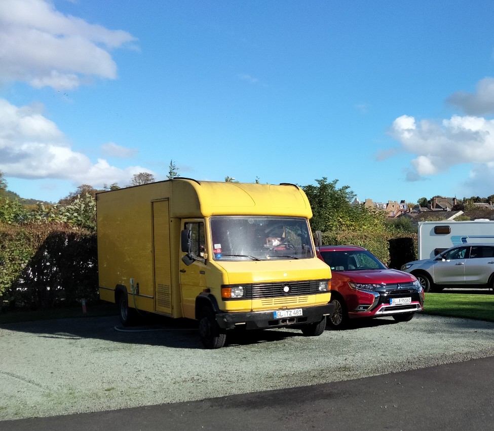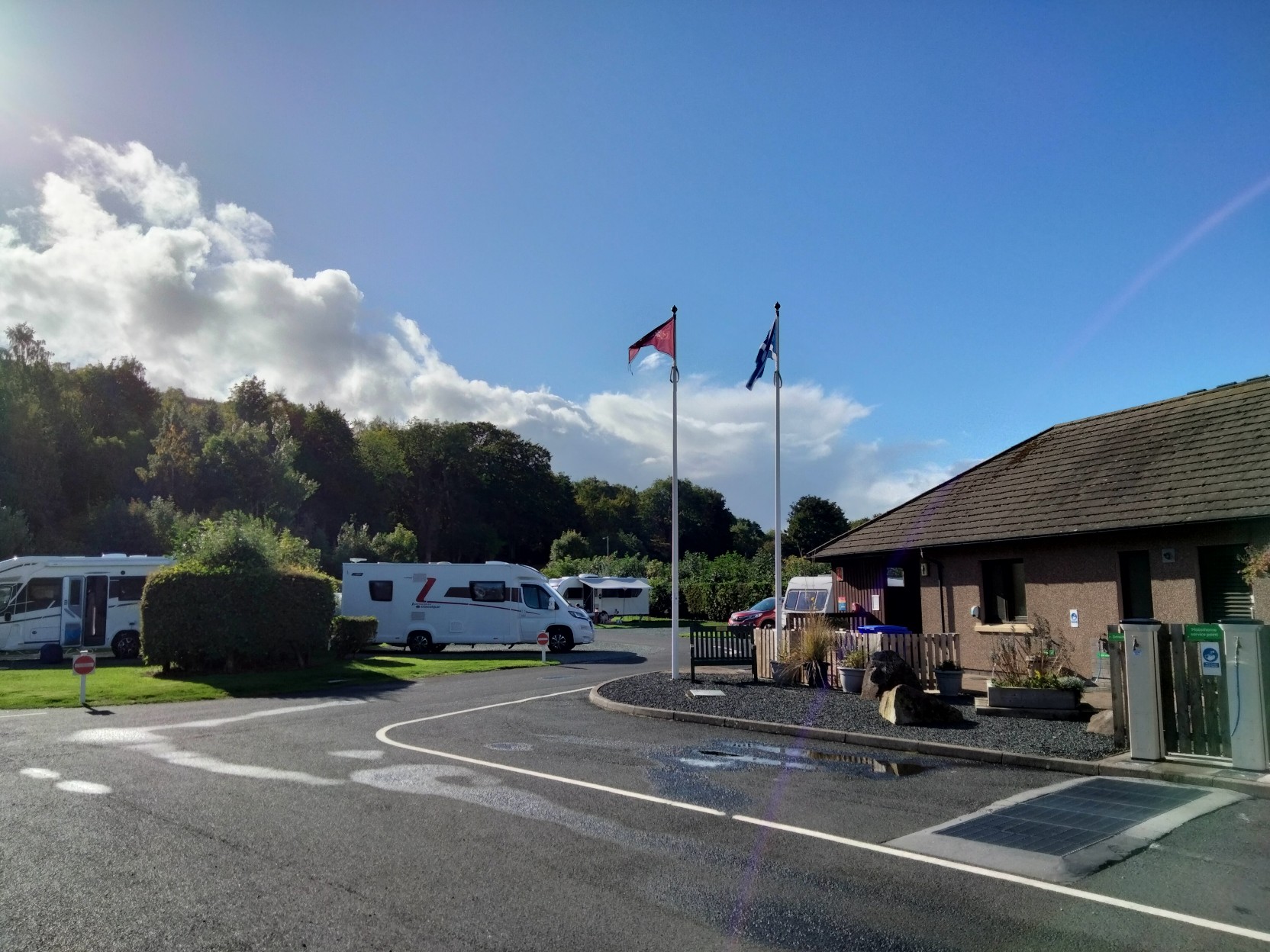 Left home in torrential rain but I fell asleep somewhere and woke up in glorious sunshine. Is there anything better than having a beautiful driver and waking up like that. Melrose again, site looks very full and only a few spaces. Lovely yellow German MH on site.
