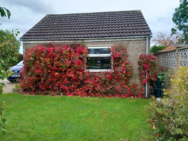 We are naked now 😉😱. All house and garage walls are either empty or climbers well trimmed to see their fate after next season. The, many lives, climbinging hydrangea finally came down on Friday following a dramatic week!