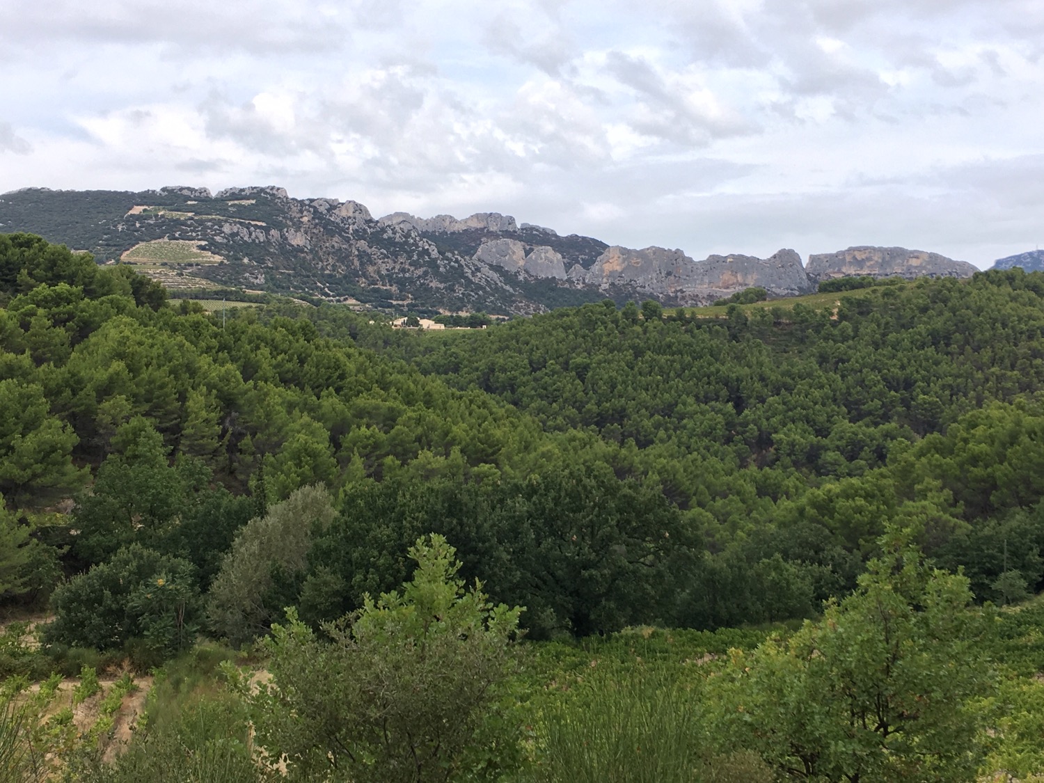 Currently at one of our favourite type of sites in France, small municipal. Facilities are fairly old but kept clean and the showers are hot with no push buttons. The site at Beaumes de Venise, not that far from Mount Ventoux, of Tour de France Fame, is in a great walking area. Rather cloudy today with a breeze, but still mid 20's, much more suited to rambling than the 34 of Tuesday. Went up onto the ridge above BdV which divides the terroir of BdV and Gigondas grapes. Nice views with the north side looking towards the teeth of the Dentelles range. When we stopped her in 2004 we walked from BdV across to them and along below the crest. Unfortunately a little beyond us now, but there is still plenty to go at within our capability.😀 Crash bangs and flashes are forecast for tonight and currently raining so A BBQ is out.☹️