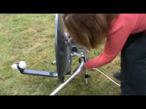 I have a sat dish on a tripod that is only 1 Metre of the ground I have been using this for over 15 years, no problem with signal just make sure that there are no trees in sight of the dish as it will not work, you have to have a clean line of sight. Compass set to142 degrees is where the signal is. As for setting it up switch the TV on and the sat box and go to settings and signal strength. Then rotate the dish slowly starting from the east and going south when you reach SSE you will see the picture on the TV then go back a little and forward to find the best reception and lock it in place. Make sure the legs of the tripod are pegged in first. Simple. Try it at home first.